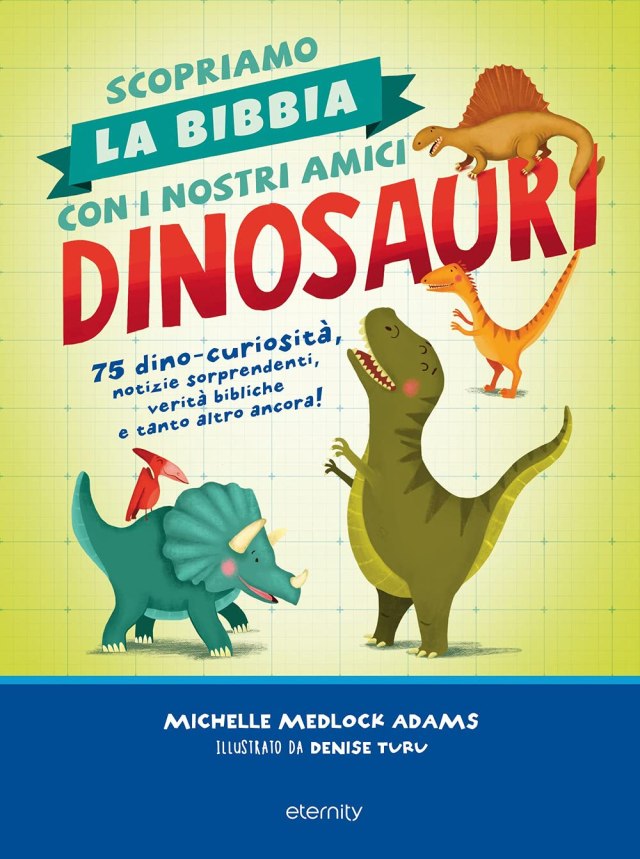 Secondo alcuni studi, uno dei motivi per cui i bambini amano i dinosauri è che ciascuno di essi rappresenta qualcosa di diverso: forza, potenza, intelligenza o altre peculiarità che in tanti vorrebbero. L’autrice ha scritto questo libro partendo proprio da quest’idea. Il libro presenta una serie di curiosità sulle caratteristiche e i comportamenti di questi animali straordinari e le accosta ad alcune verità bibliche, per avvicinare i piccoli lettori a Dio. Graficamente accattivante e ideale per i bambini dagli 8 ai 12 anni, il volume contiene 75 brevi meditazioni arricchite da illustrazioni e contenuti aggiuntivi che stimolano l’apprendimento. Attraverso questo libro, i piccoli lettori potranno scoprire di più sui loro dinosauri preferiti e, al tempo stesso, conoscere meglio Dio e la Bibbia, per crescere nella fede divertendosi. Età di lettura: da 8 anni.